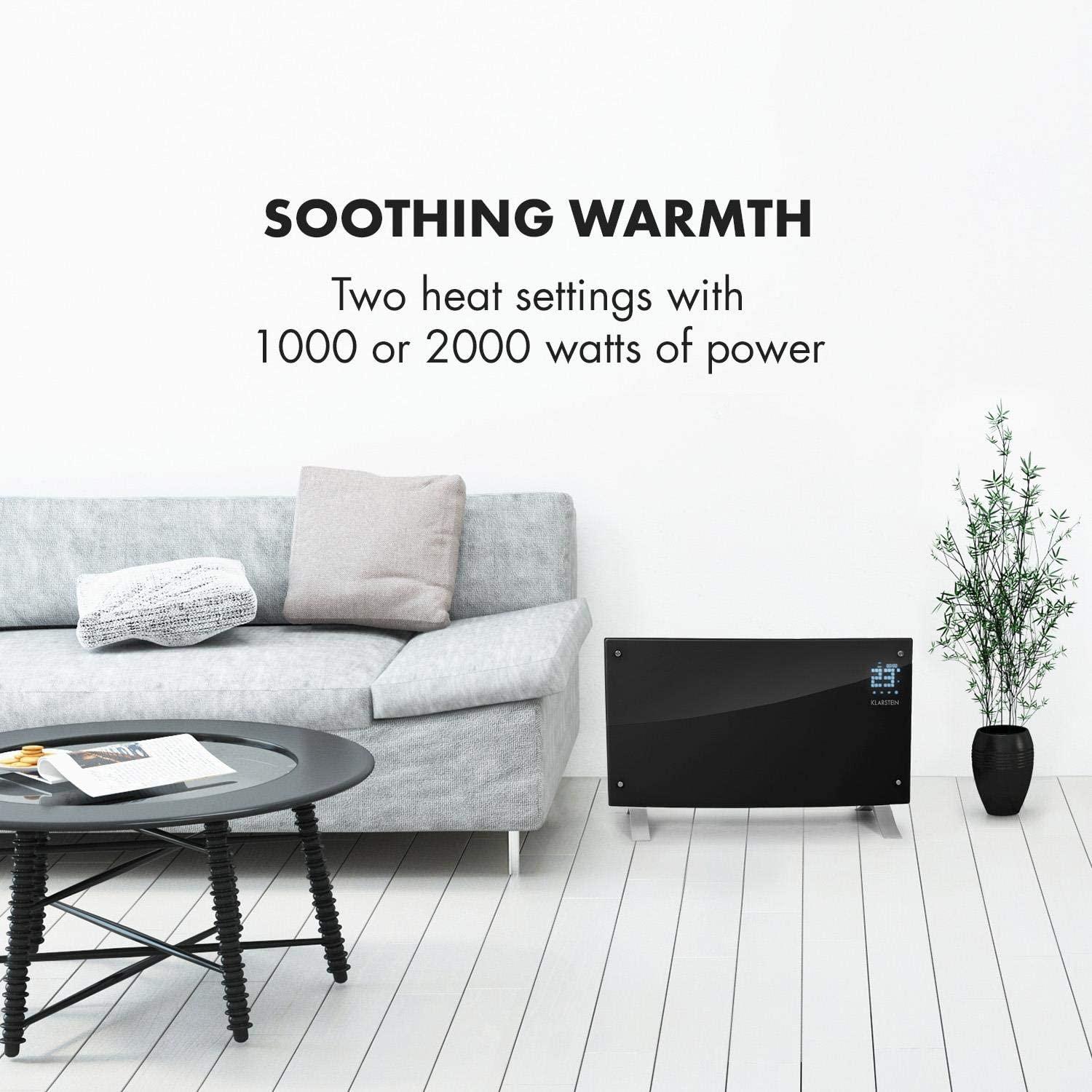 KLARSTEIN holm Curved Ambient, Convection Heater, Portable Electric Heater, 1500 Watts, Temperature Range 41 – 113 °F, Thermostat, Timer Function, ECO Mode, Touch, Protection Class IP24, LED Display, Black