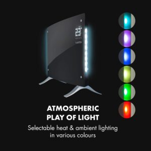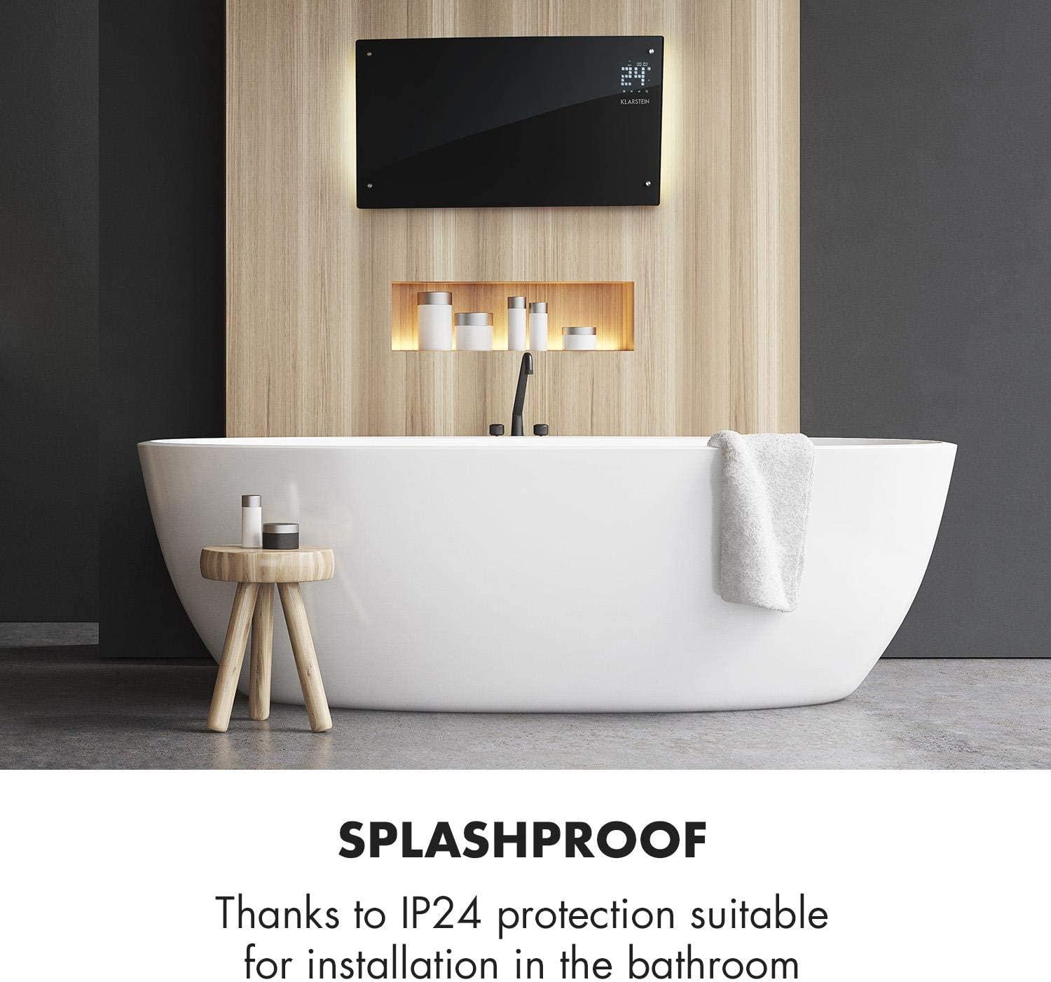 - SPLASH-PROOF: The convex glass panel of the Klarstein Curved Ambient convection heater is splash-proof and can therefore be safely placed in damp rooms. The stylishly curved shape gives the heating device a particularly elegant appearance, and brightens up your room
