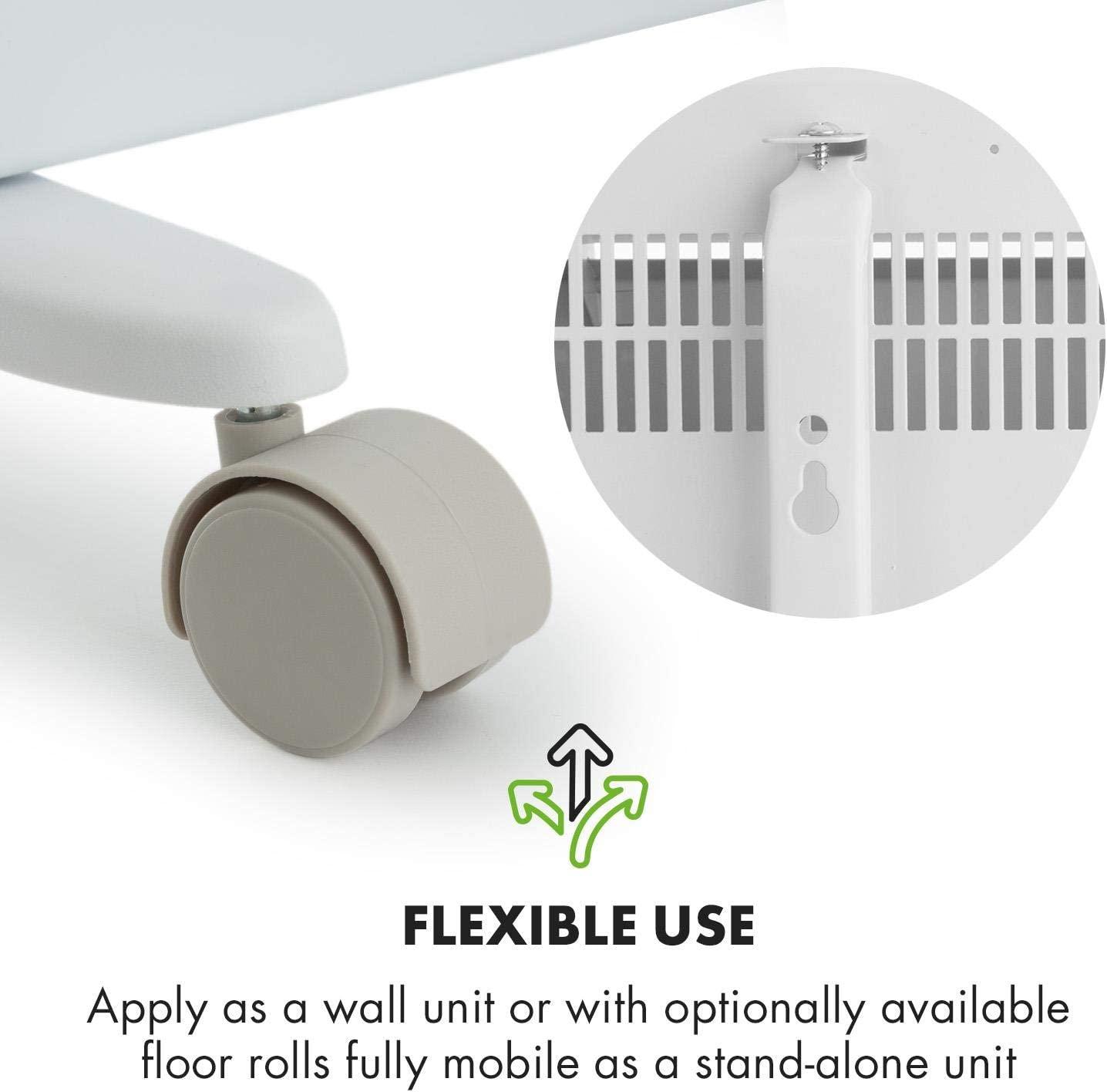 - SLIM DESIGN: With a slim design perfect for your bedroom, living room, kitchen, or bathroom, the Klarstein Hot Spot convector panel heater brings soothing and well distributed heat to keep you warm. Even better you can choose between mounting it on a wall or attaching removable caster wheels. No matter how cold winter gets you can be sure that this elegant and easily manoeuvrable heater will keep you warm.