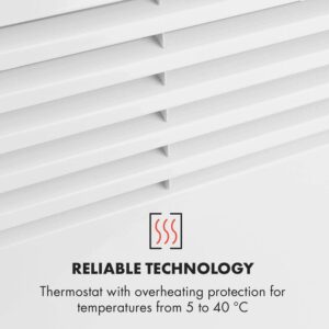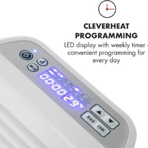 - EASY TO USE: The Klarstein Hot Spot comes with a remote control so that you can easily adapt the heat to your desired temperature from the couch, snuggled up in bed or at the dinner table. To make life even easier there is a weekly timer for each day of the week so that you can program the heater to automatically turn on and off without you needing to raise a finger.