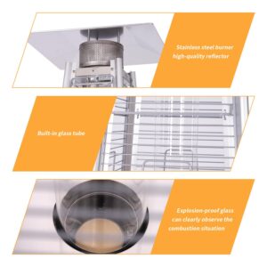 1.Quality Material Design:The heater is made of high quality stainless steel and glass tube, it’s designed to Provide and maintain optimal durability and perfectly complement your patio furniture and outdoor decor.