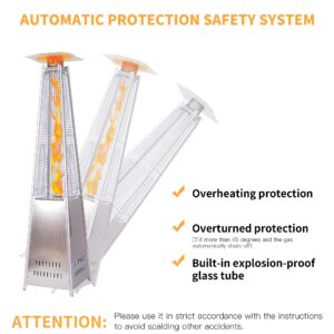 Kmowoo Outdoor Patio Pyramid Propane Space Heater,Portable Flame Heater,W/Wheels,Stainless Steel Color