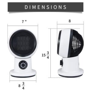 - [Energy efficient heater] Manual controls, fully assembled. With PTC ceramic heating tech and adjustable thermostat, the heater can be adjusted to the most comfortable warmth. Helps to save electric bills by heating up needed spaces and also it’s quiet enough to use in a bedroom while sleeping.