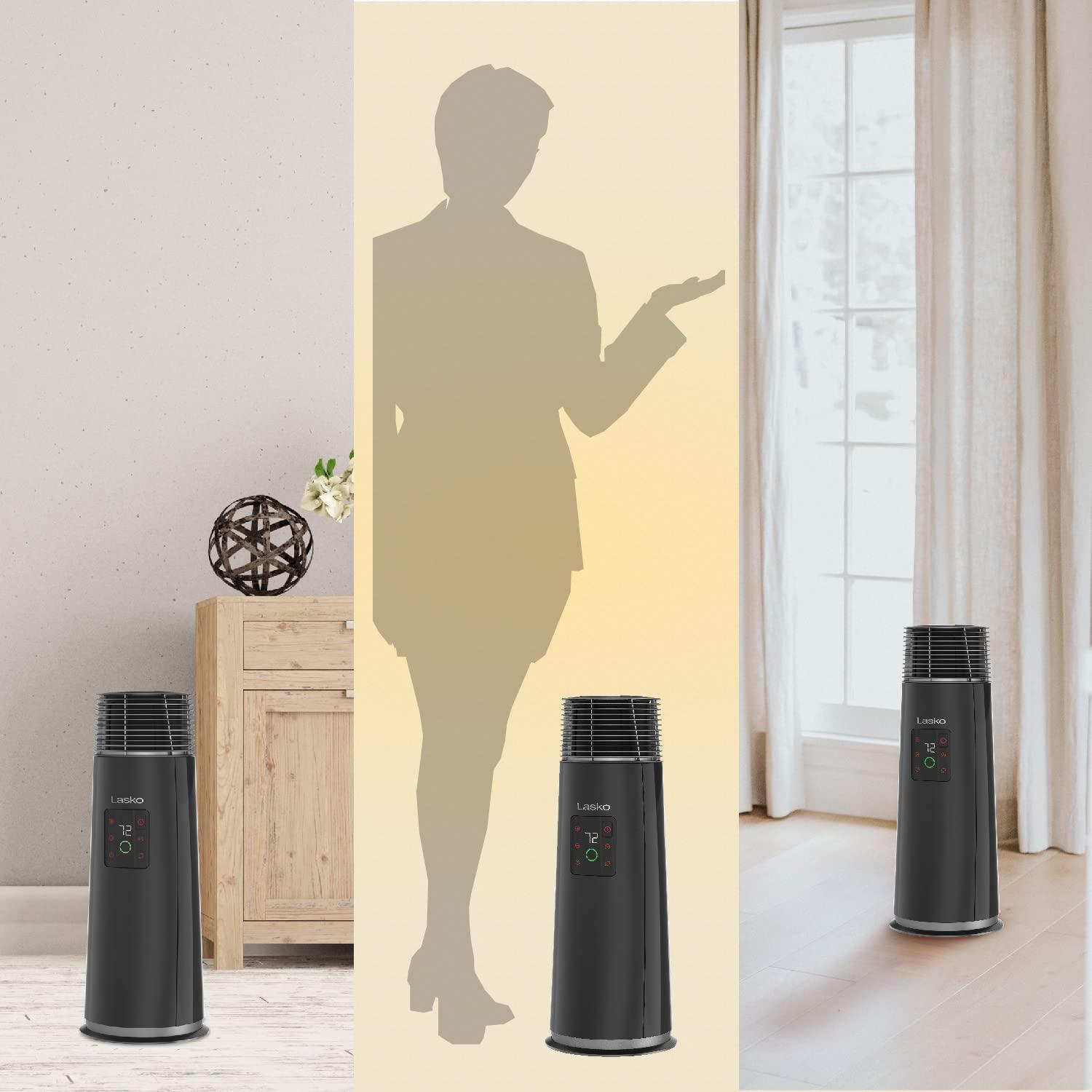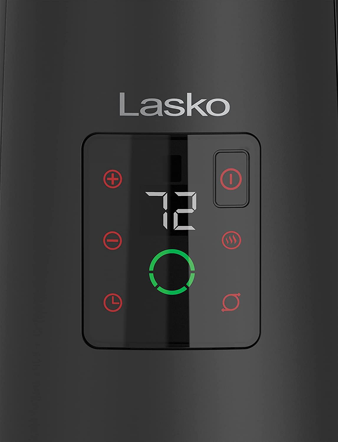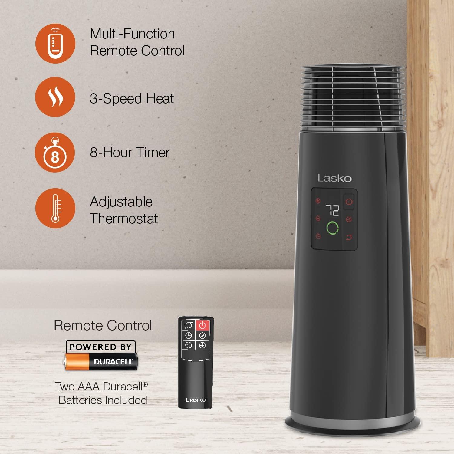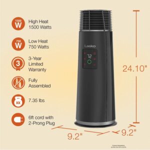 Lasko 360-Degree Oscillating Ceramic Tower Heater for Home with Tip-Over Safety, Adjustable Thermostat, Timer, Remote and 3 Speeds, 24 Inches, Black, 1500W, CT24362