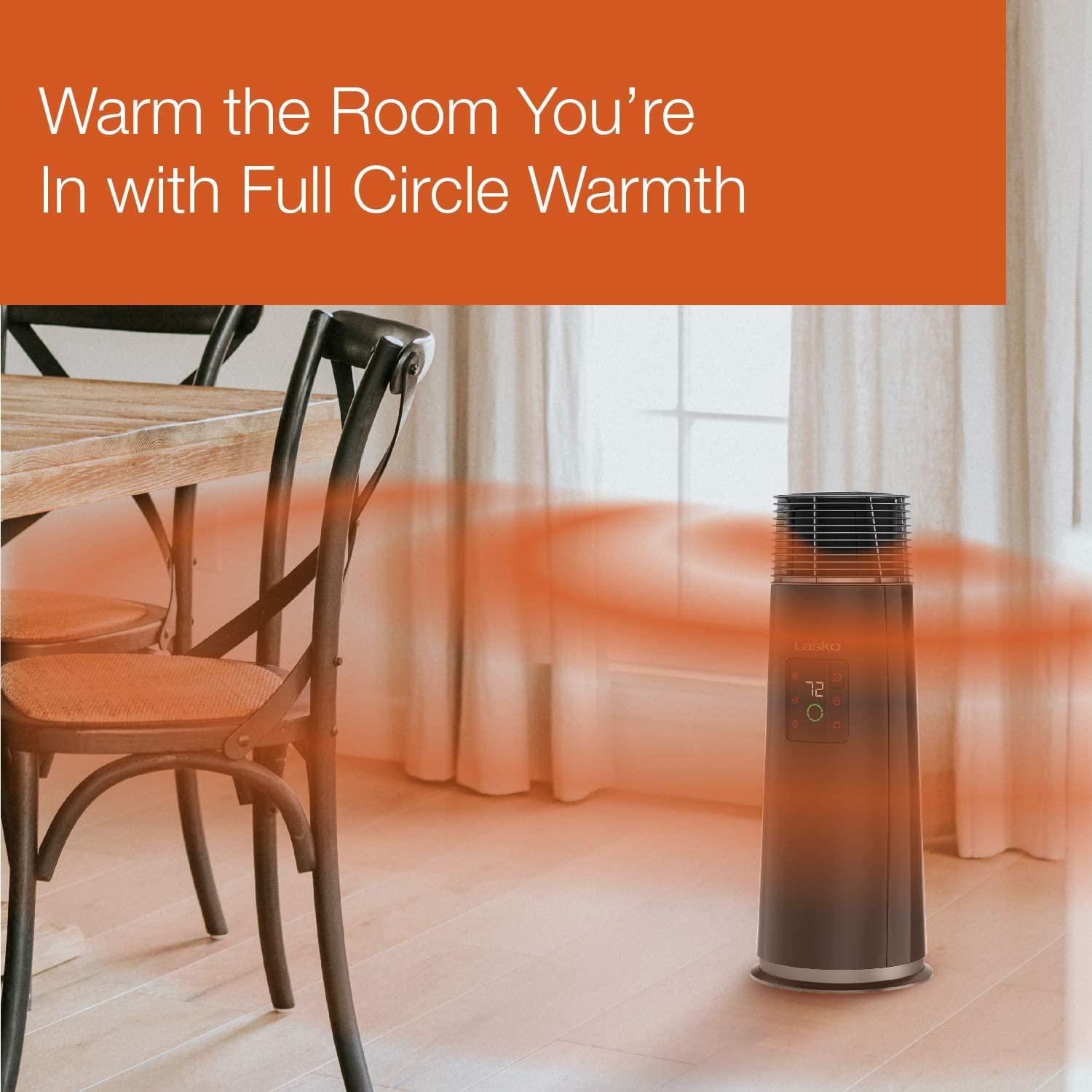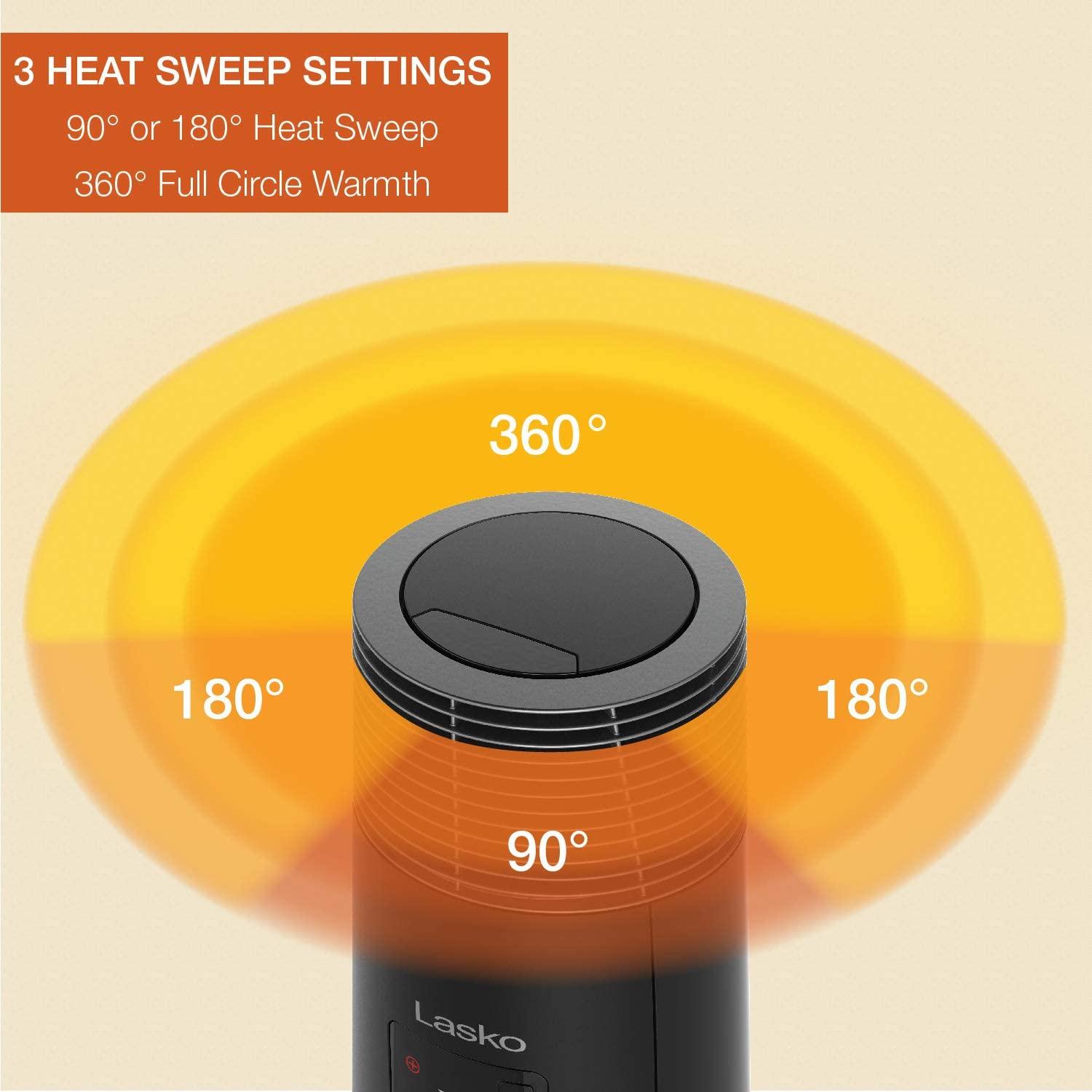 - FULL-CIRCLE HEAT MOVEMENT – Provides much more than the average oscillation, this heater allows you to select 90°, 180°, and 360° coverage so it’s great at distributing warm air evenly throughout large rooms
