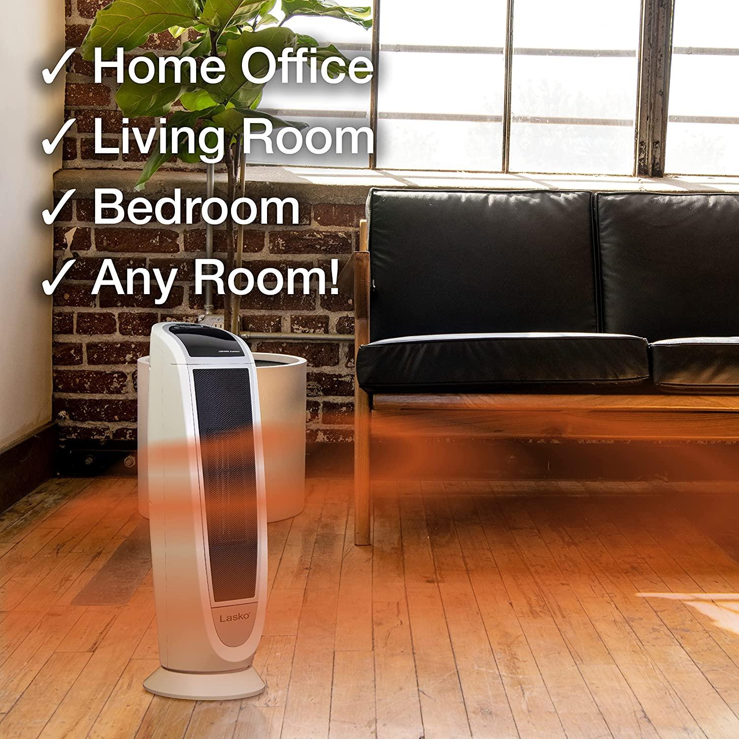 - 【Built-in safety】Features overheat protection with a safer ceramic element designed to automatically regulate its operating temperature. The exterior heater housing stays cool to the touch and has a built-in carry handle, so you can move it safely from room-to-room. This heater is ETL listed and complies with North American safety standards. This tower space heater stands 22.76 inches H and 8.13 inches wide/deep — a perfect size for the bedroom, home office, living room, or almost any room in the home
