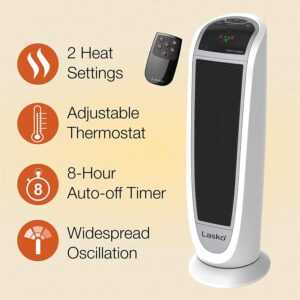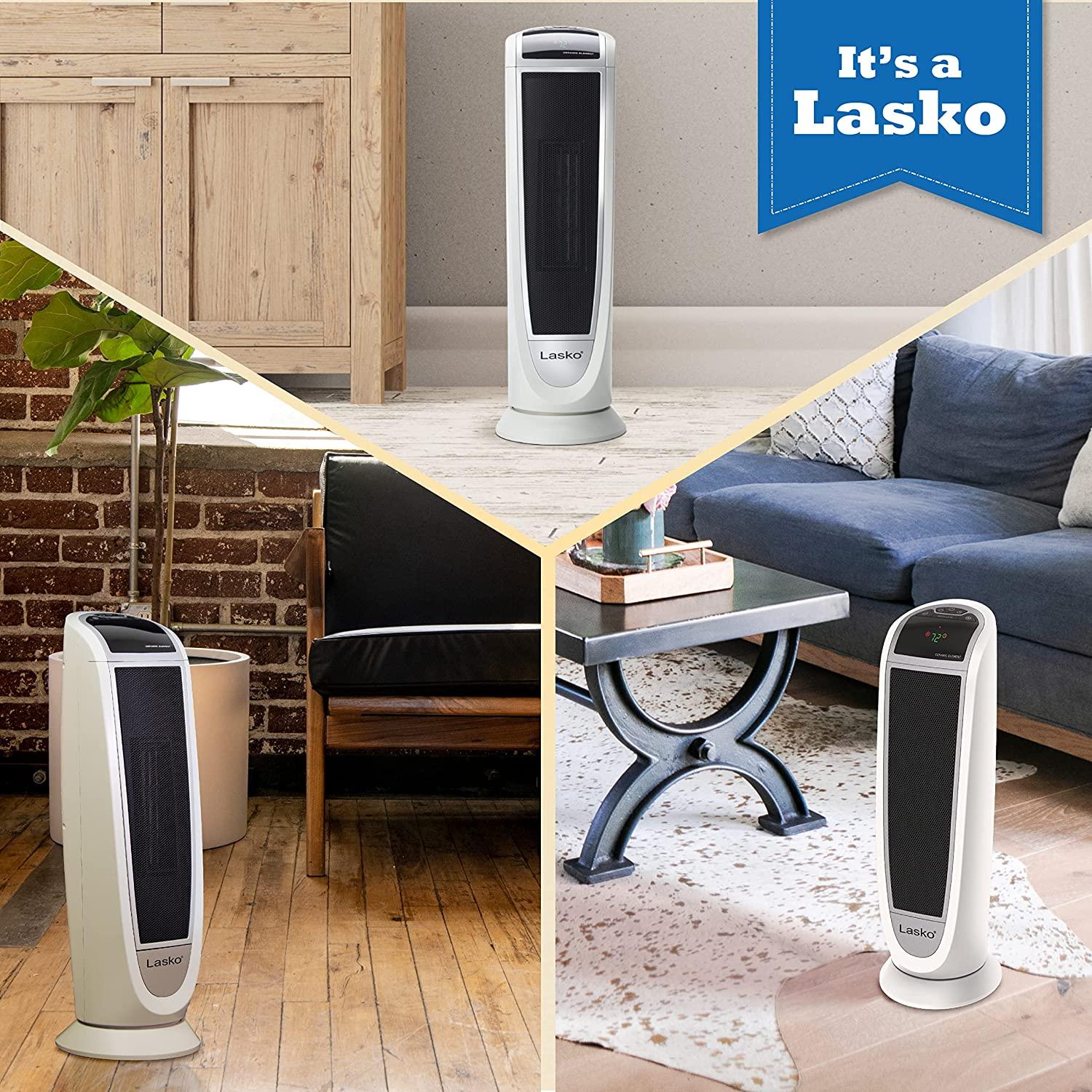 Lasko 5165 Digital Ceramic Tower Heater with Remote Control, 1500W, White