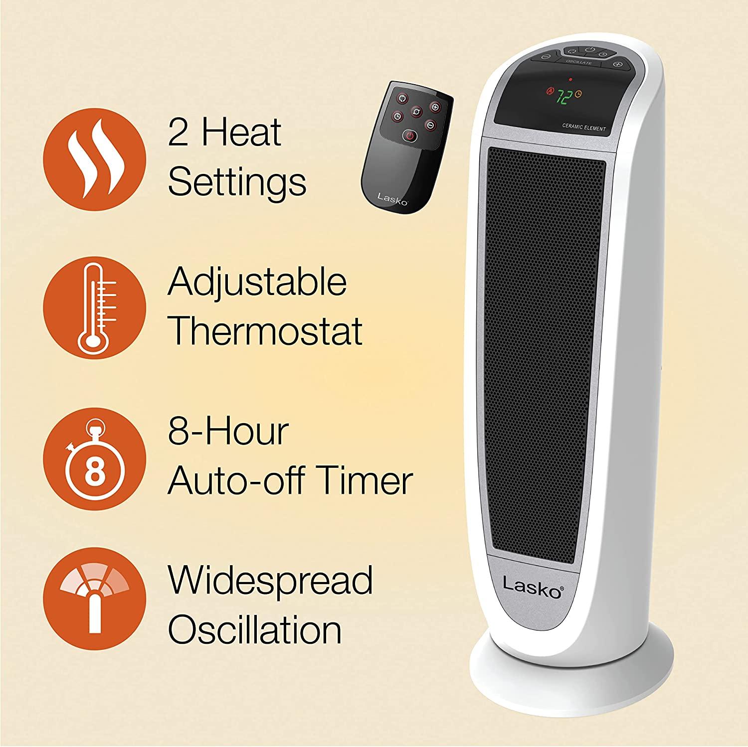 - 【Multi-Function Remote Control】Use the 5-function remote control to turn the heater on/off, select the speed, adjust the temperature, set the timer, or turn on the oscillation from a distance. Plus, there is storage for the remote on the back of the heater