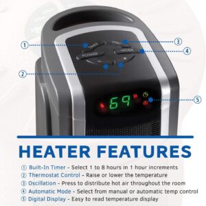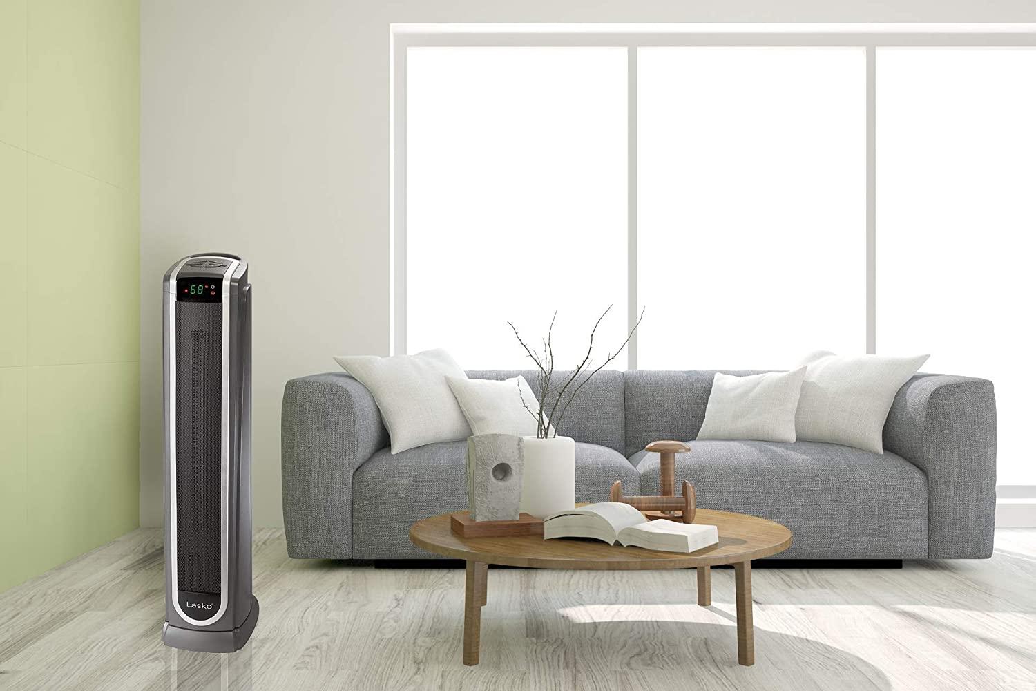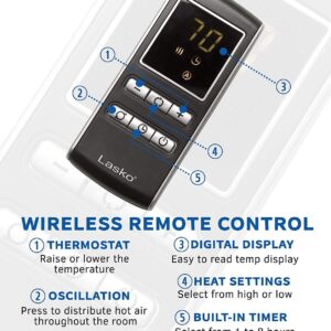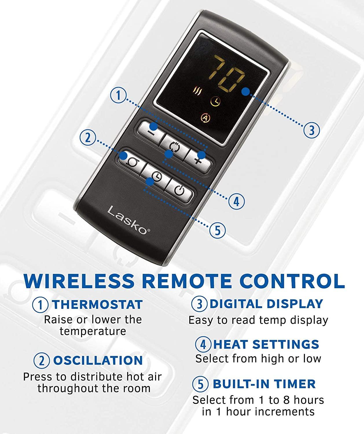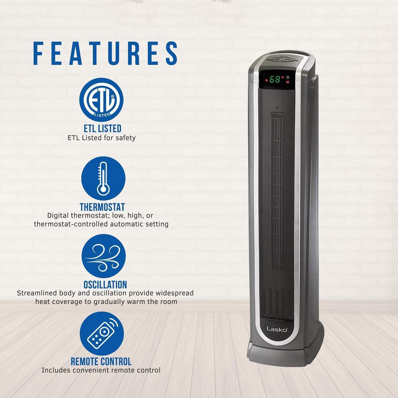 Lasko Ceramic Tower Space Heater with Logic Center Digital Remote Control-Features Built-in Timer and Oscillation, 7.3″L x 9.2″W x 29.75″H, Black 5572