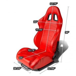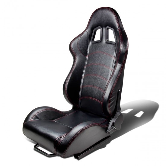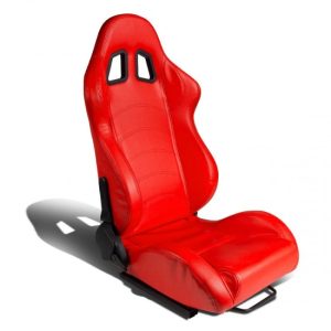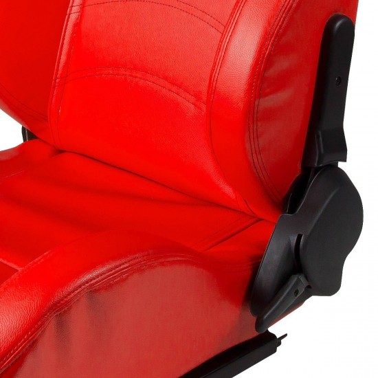 Left / Driver Side Reclinable Red PVC Leather Racing Seat w/Universal Slider