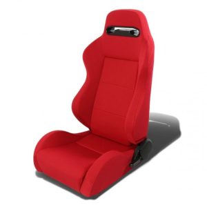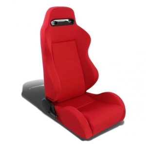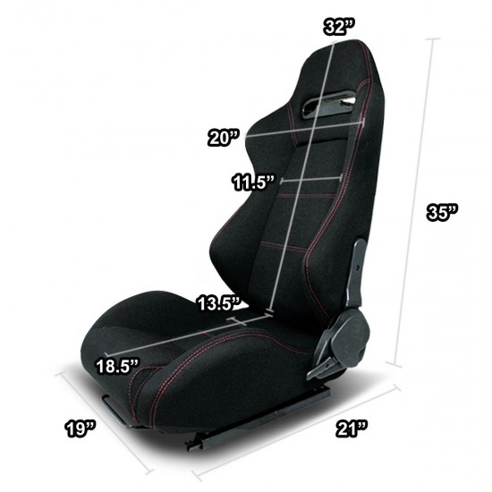 Left / Driver Side Reclinable Red Stitch Woven Upholstery Cloth Racing Seat w/Universal Slider