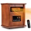 LifePlus Electric Infrared Heater Portable Wood Cabinet with Remote Control Thermostat Energy Efficient for Indoor Use Home