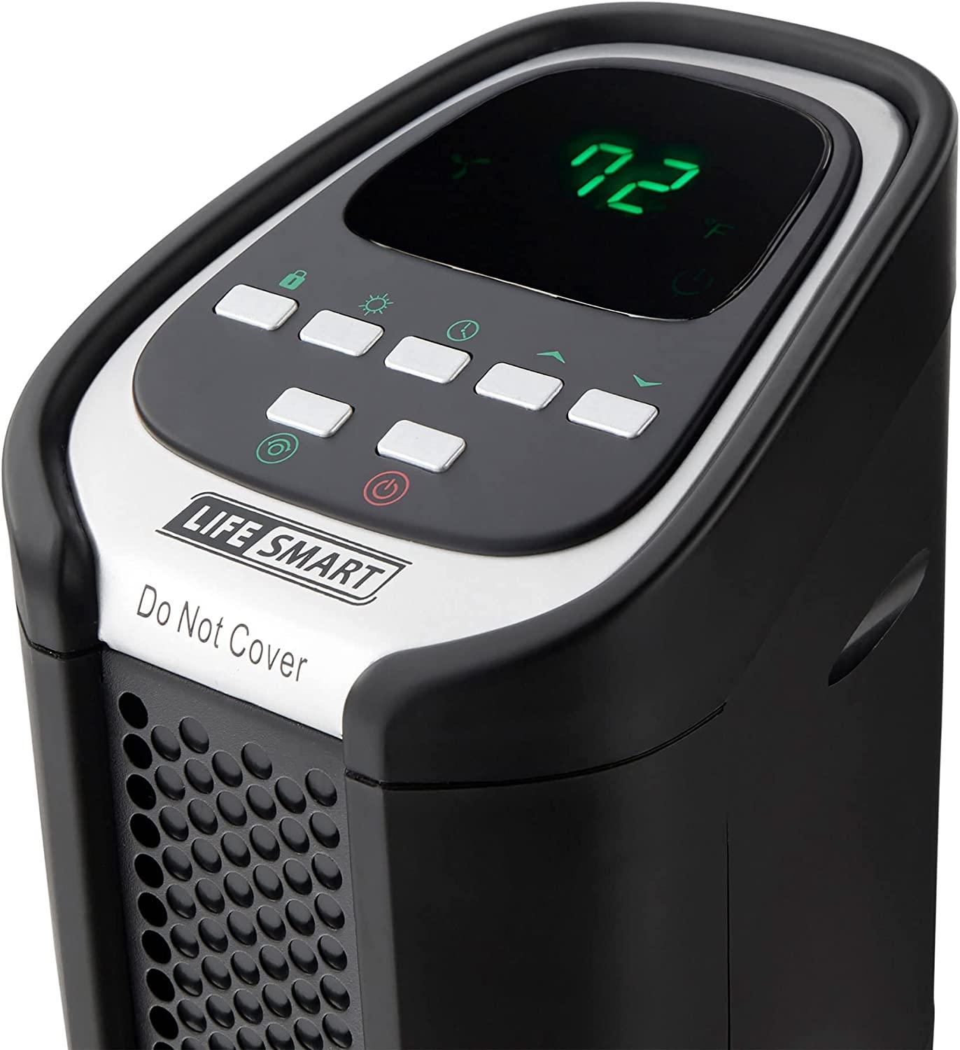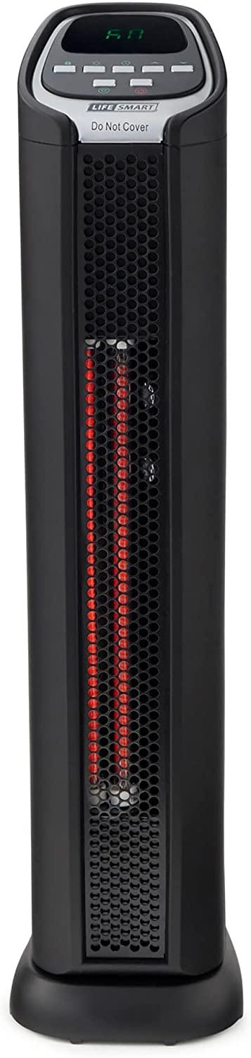 LifeSmart HT1053 1500 Watt Portable 24 Inch Electric Infrared Quartz Tower Space Heater for Indoor Use with 2 Heating Elements, Black
