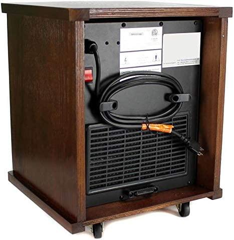 - SPECIFICATIONS: Caster wheels for easy portability; Recommended Single Room Size: 150 square feet; Thermostat Range: 50 to 97 degrees; Requires standard 3 prong, 120V outlet; Power Cord Length: 6 feet; Maximum Output: 1500 Watts; Voltage Rating: 120 V (60Hz); Color: Dark oak finish; Dimensions: 15 x 14.8 x 18.3 inches; Weight: 27.3 pound; Quantity: 2; Manufacturer warranty: 1-year warranty