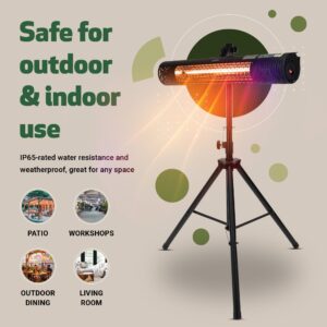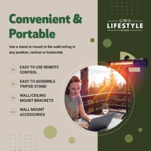 - MOUNTING: Portable for indoor/outdoor use / Perfect for outdoor dining, patios and workshops / Includes easy-to-assemble tripod stand / Mounts to wall or ceiling and can be positioned vertically or horizontally