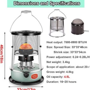 - 【More Efficient Heating】Kerosene heaters is made of special metal, so that the kerosene can be fully burned, and the heating is faster and more efficient.Fuel tank capacity 4.5L.