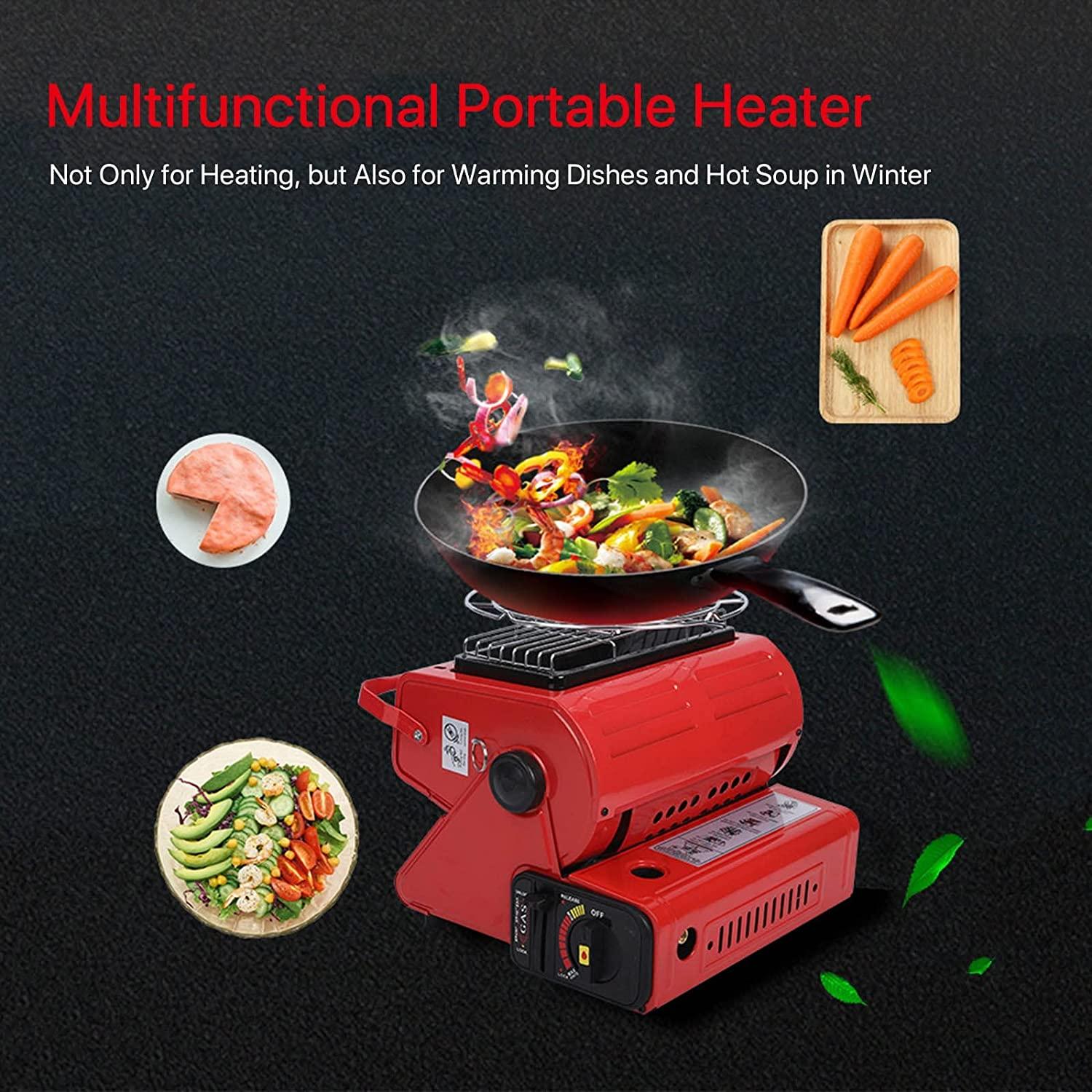 LIUD Portable Heater Propane 1.3kw Tent Heater Camping Heater Two Modes, Stepless Temperature Adjustment Camping Stove Gas Heaters with Convenient Handle for Camping Garage Ice Fishing (Color : Red)