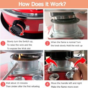- 【Adjustment Knob】The kerosene Stove has a rotary control valve to adjust the fire according to your needs; no noise and glare. The heating station on top can be used as a work station for cooking food.