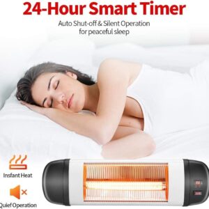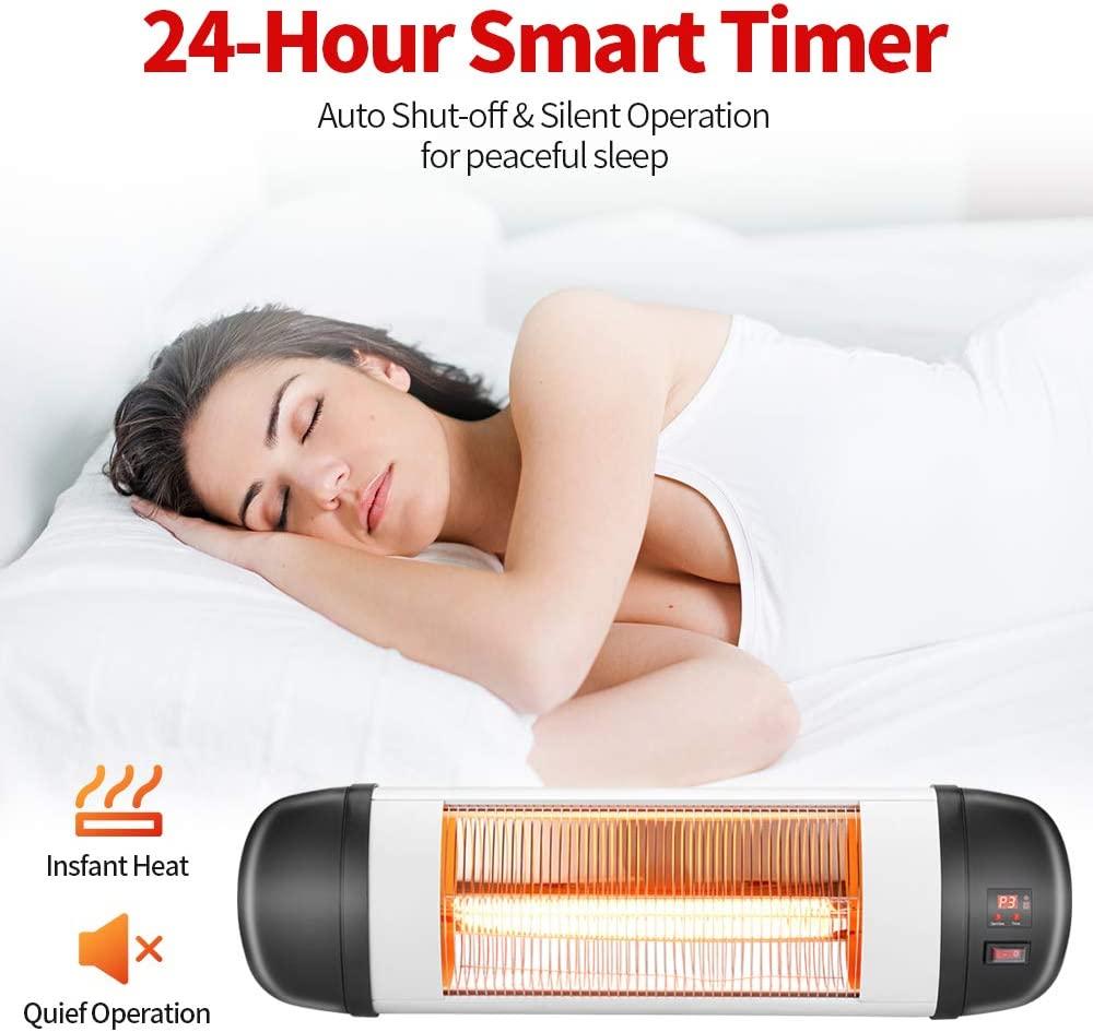 - Applicable to Indoor & Outdoor: Wall mounted design make it a perfect heating solution for areas such as bedroom, living room, garage, courtyard, outdoor patios, office and even public place like restaurant. This carbon heater will defend coldness and bring warmth no matter you are staying at home, working or dinning with friends
