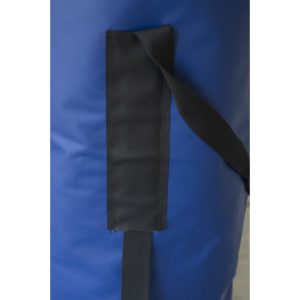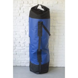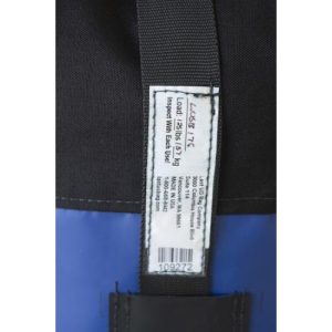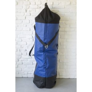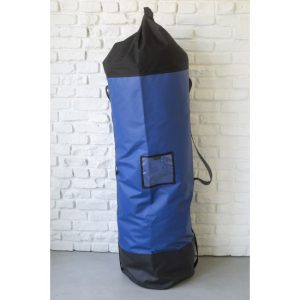 Madeith 22oz Vinyl and 1000d Cordura Nylon with a 125# lift rating. Features include an adjustable lift sling with a steel ring, a clear ID window, and a roll-top closure. 35oz. VCP Vinyl base. Measures 17″ diameter x 48″ height.