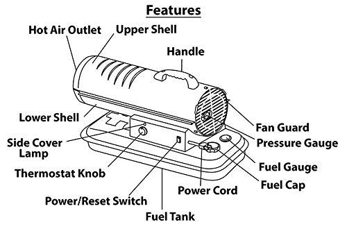 Master Kerosene Forced Air Heater, 5.0 gal, 0.52 GPH, BtuH Output 75,000, 1875 sq. ft.