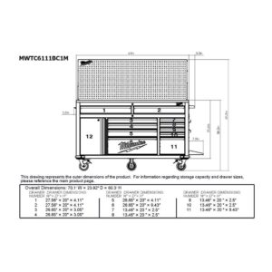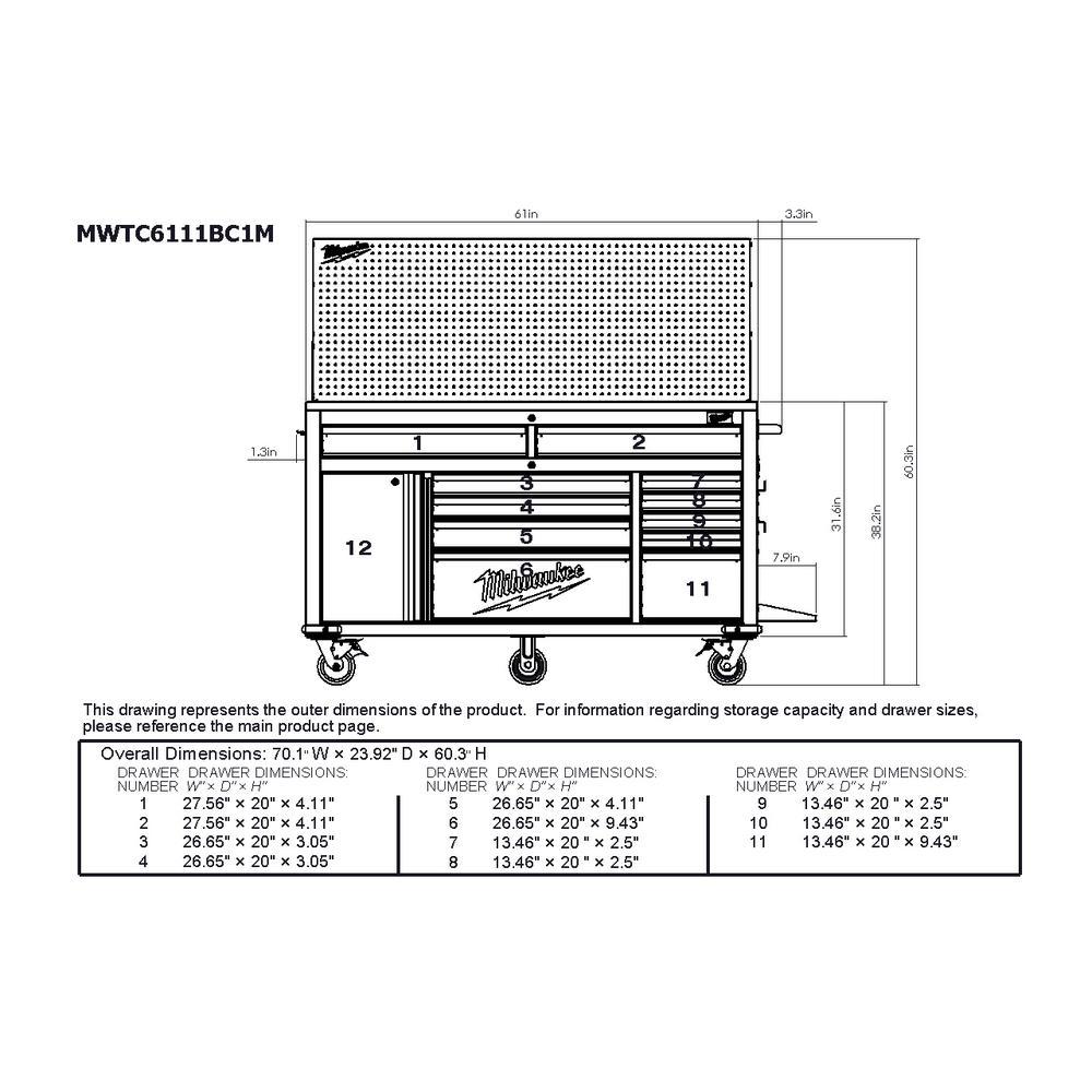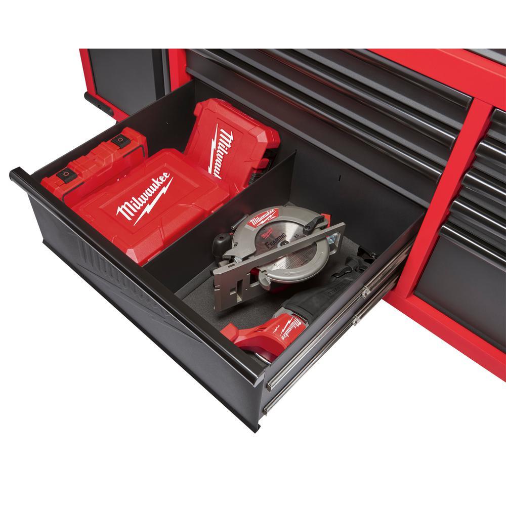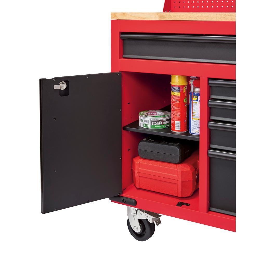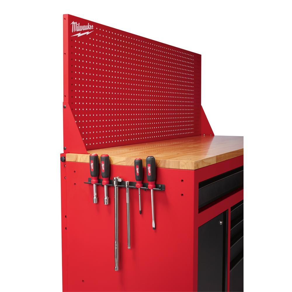 Milwaukee 61 in. 11-Drawer/1-Door 22 in. D Mobile Workbench with Sliding Pegboard Back Wall in Red/Black-MWTC6111BC1M