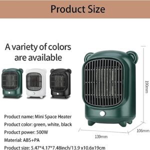 Mini Space Heater Portable Ceramic Heater Fan With Thermostat Ceramic Small Space Heater Space Heater For Indoor Use For Office Desk Bedroom (Green) (Color : Black)