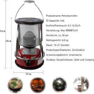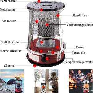 - ☩Energy-saving: Portable kerosene stove Heating without electricity. Compared to electric heaters, kerosene stoves quickly heat up the temperature of the room without drying out the room.