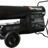 - Heavy duty lockable casters make this heater easy to roll around