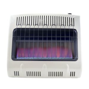 Wintertime is about to get a whole lot warmer with the Mr. Heater 20,000 BTU Vent Free Blue Flame Propane Heater.This indoor, propane fueled heater will give your home, sun room, or cabin some extra heat when the wind starts to blow and the snow shows up. 20,000 BTUs will scare the cold away in any area of up to 500 square feet. Equipped with a thermostat, the temperature of this heater can be easily adjusted. The clean burning blue flame tube burner uses the natural convection of the burn to evenly circulate cozy air. This heater is safe for indoor use and can be permanently mounted to the wall or securely fastened to the floor. Legs, mounting brackets, and fasteners are included. Not only will you be warm, but you’ll be safe too. This heater features an oxygen depletion sensor and a high limit safety shutoff. Cozy in and cuddle up when you make the winter air a little less frigid with the help of the Mr. Heater Vent Free Blue Flame Heater.