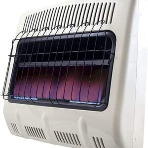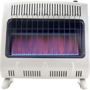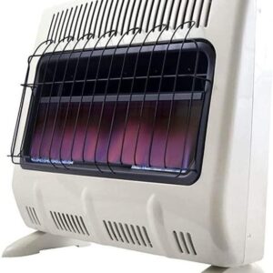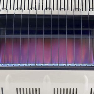 - Clean burning blue flame tube burner utilizes the natural convection of the burn to evenly circulate warm air