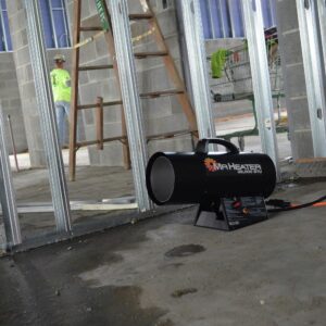Heavy-duty design built for the jobsite. The Mr. Heater LP Forced Air Heater comes with a standard 10ft hose and regulator and all the safety you would expect of a Mr. Heater product. Equipped with factory installed high limit switches and thermoelectric safety valves, you can feel comfortable using these heaters on any jobsite. Just plug the heater into a 110v outlet, hook up the included hose and regulator to a 20lb LP tank or larger, and you are ready to take the chill out of any job.