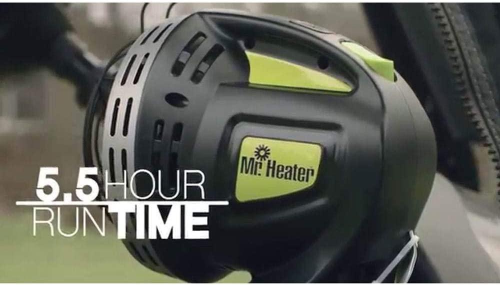 - Connects directly into a 1 pound propane tank container for a 5.5 hour runtime