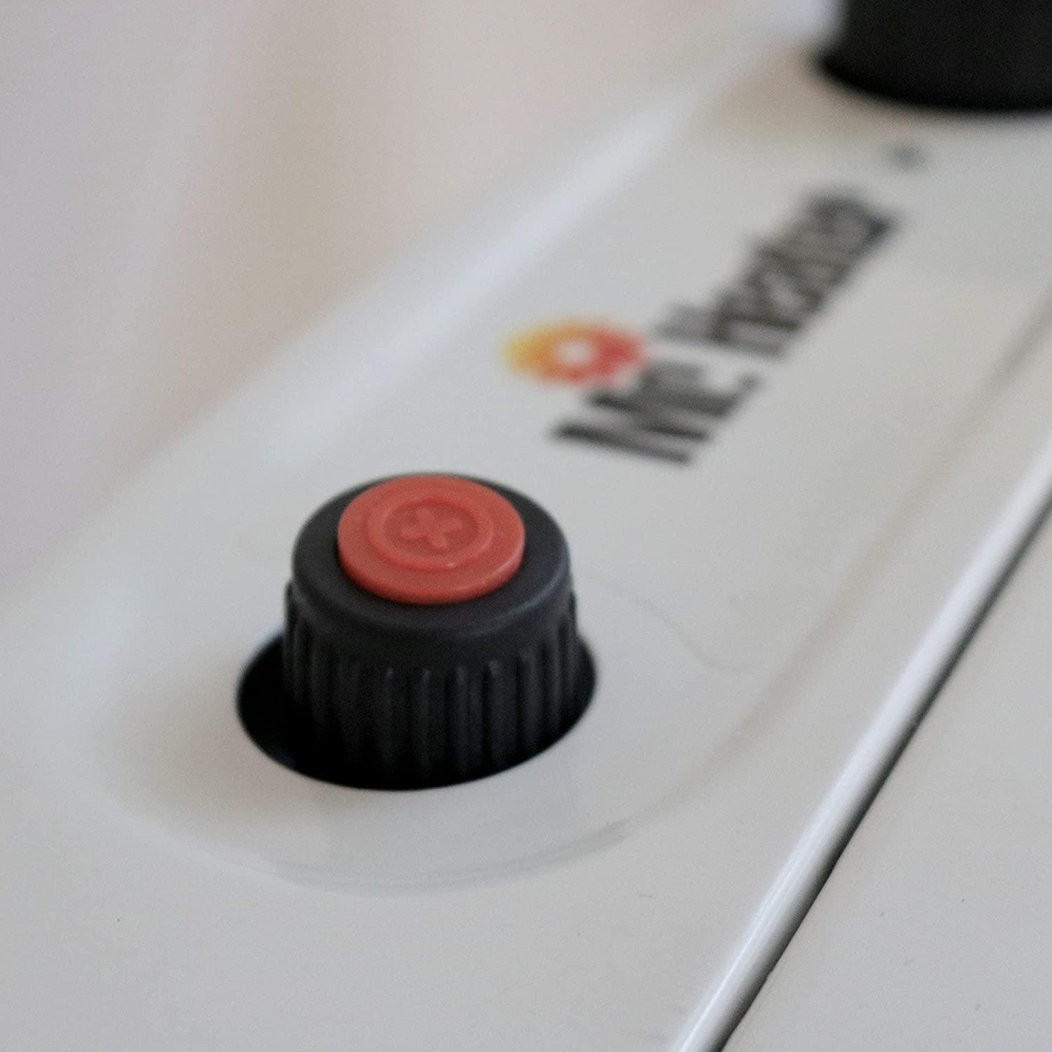 - Blue flame burner for even convection heat. Thermostat for automatic temperature control