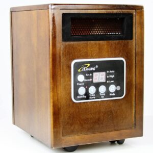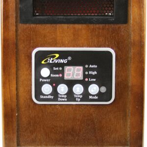 New iLIVING Infrared Portable Space Heater with Dual Heating System, 1500W, Dark Walnut Wooden Cabinet
