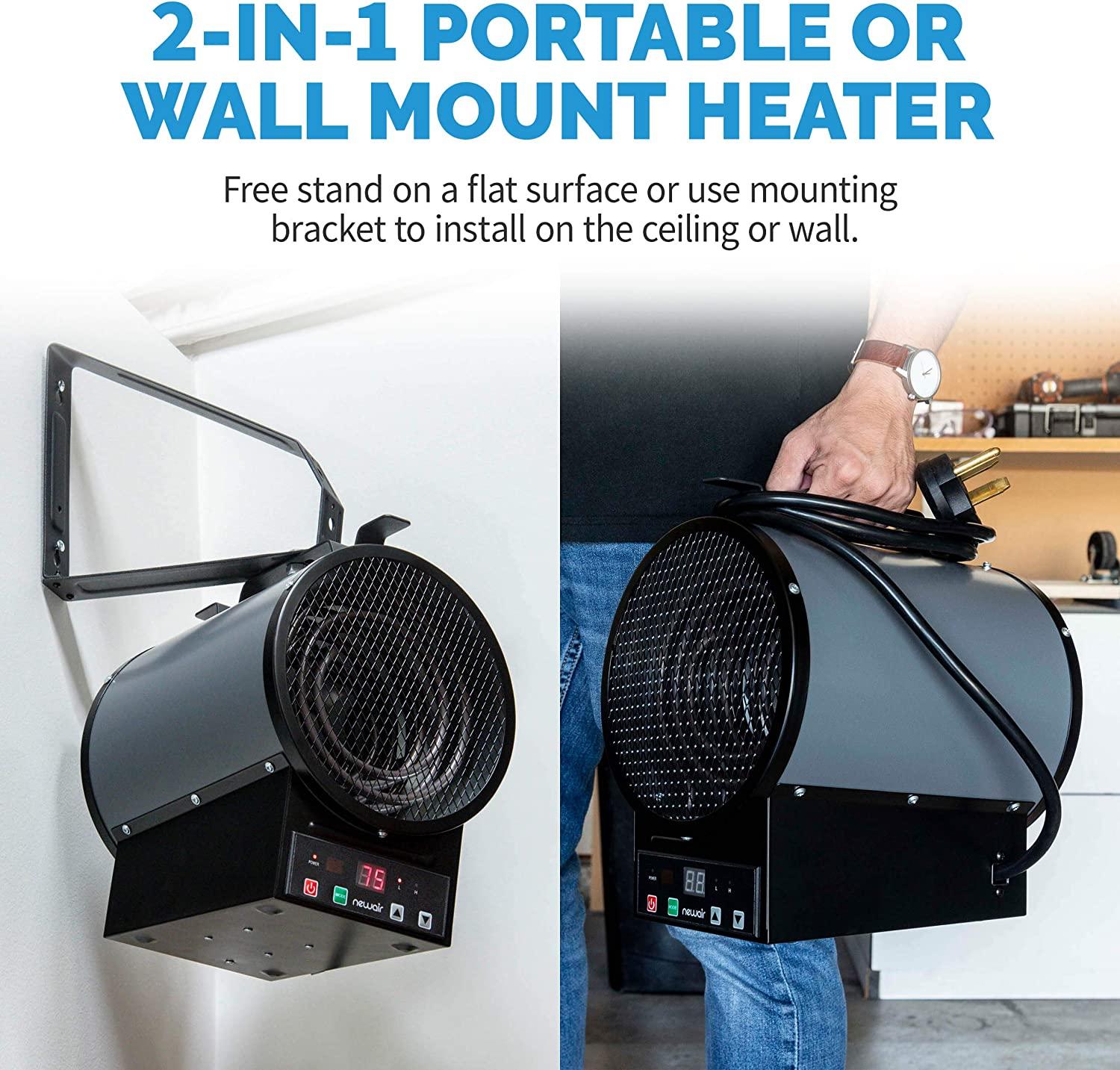 NewAir, NGH500GA00, 2-in-1 240V 4800 Watt Portable or Mountable Garage Heater, Heats Up to 500 Square Feet, Gray
