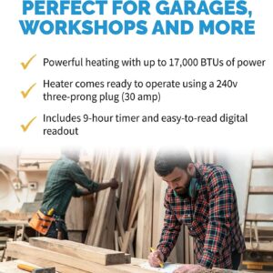 - SAFETY – This electric shop heater has an automatic shut-off function to prevent overheating.