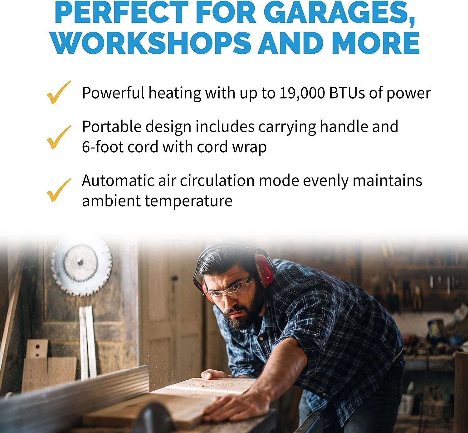 NewAir Portable Heater (240V) Portable Electric Garage Heater Heats Up to 800 sq. ft. with 6-Foot Cord Wrap and Carrying Handle | 5600 Watt Portable Electric Shop Heater for Garage and work shop