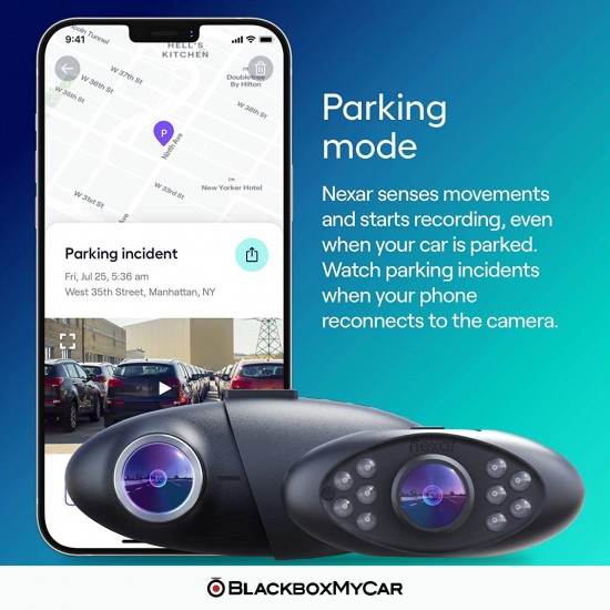 Nexar senses even the slightest impact and starts recording immediately, even when your car is parked. Get notified and watch recorded parking incidents as soon as your phone is nearby and connected to the dash cam.