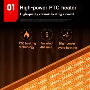 - Large Air Outlet: Design of Large Hot Air Volume, Heating Immediately after Turning on Thehine, High Thermal Efficiency and Cold Resistance.