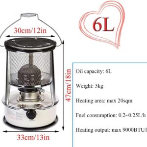 Non Electric Kerosene Stove Heater Outdoor Camping Kerosene Stove 6L Kerosene Heater for Indoor Tent Heating Camping Cooking (Color : White, Size : 6L)