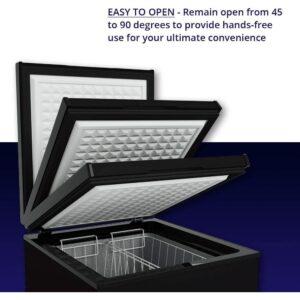 - PREMIUM USER EXPERIENCE – The steady lid allows you to effortlessly access the chest freezer hands-free; holding itself open between 45° and 90° angles. Just like with our whisper quiet compressor, we have engineered the door mechanism to be very quiet when opening and closing the door.