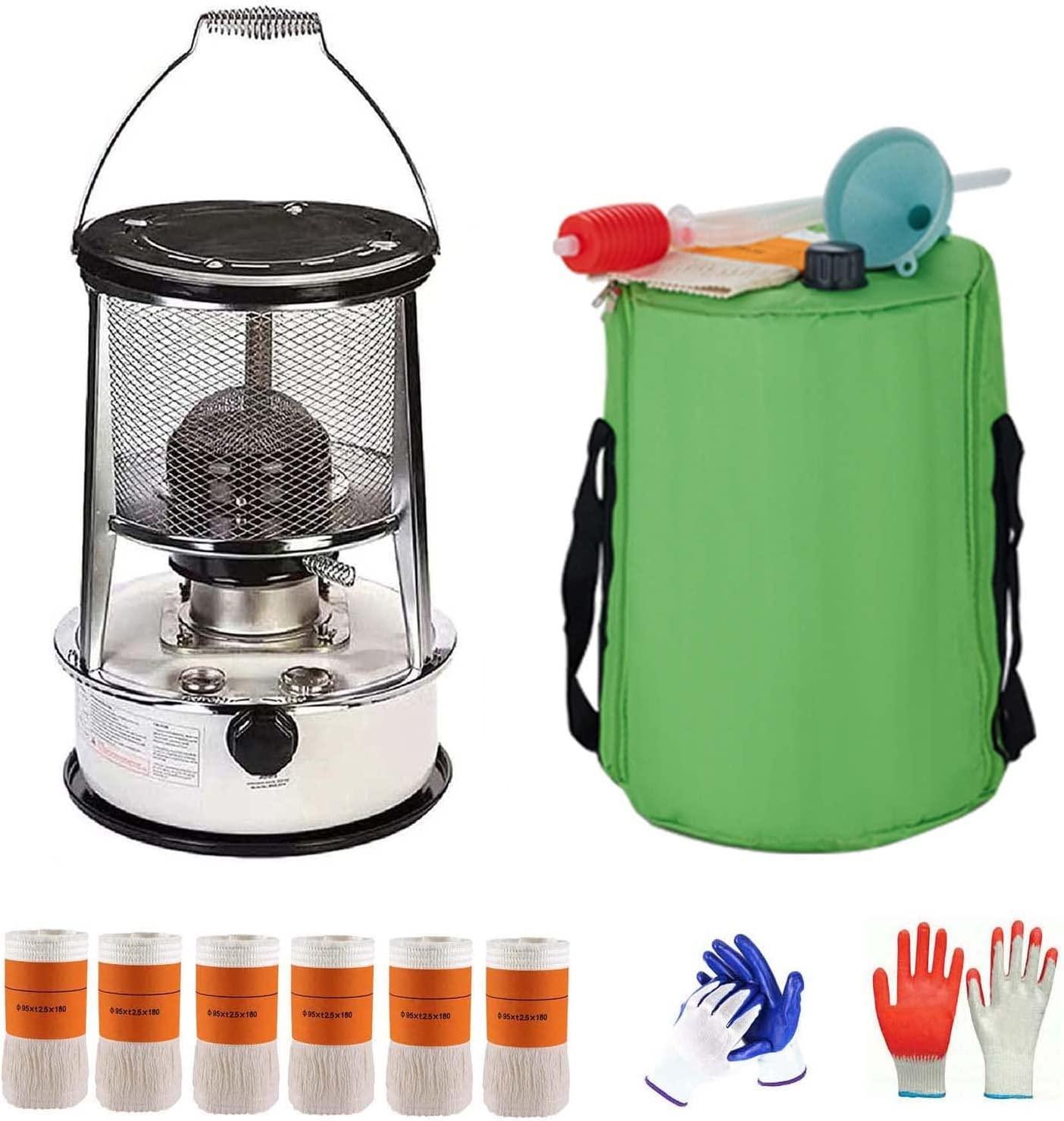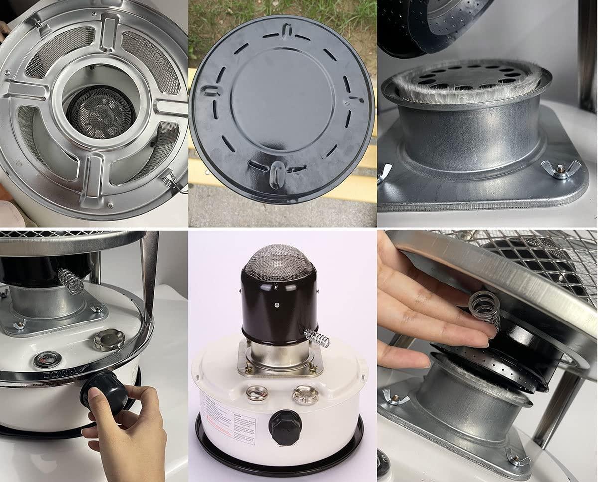 - ☛ Large-capacity fuel tank: Kerosene stoves are available in 4.6L (red) and 6L (white); equipped with storage bags and replacement parts for easy transportation, easy to carry; 360-degree protective grille for high security.
