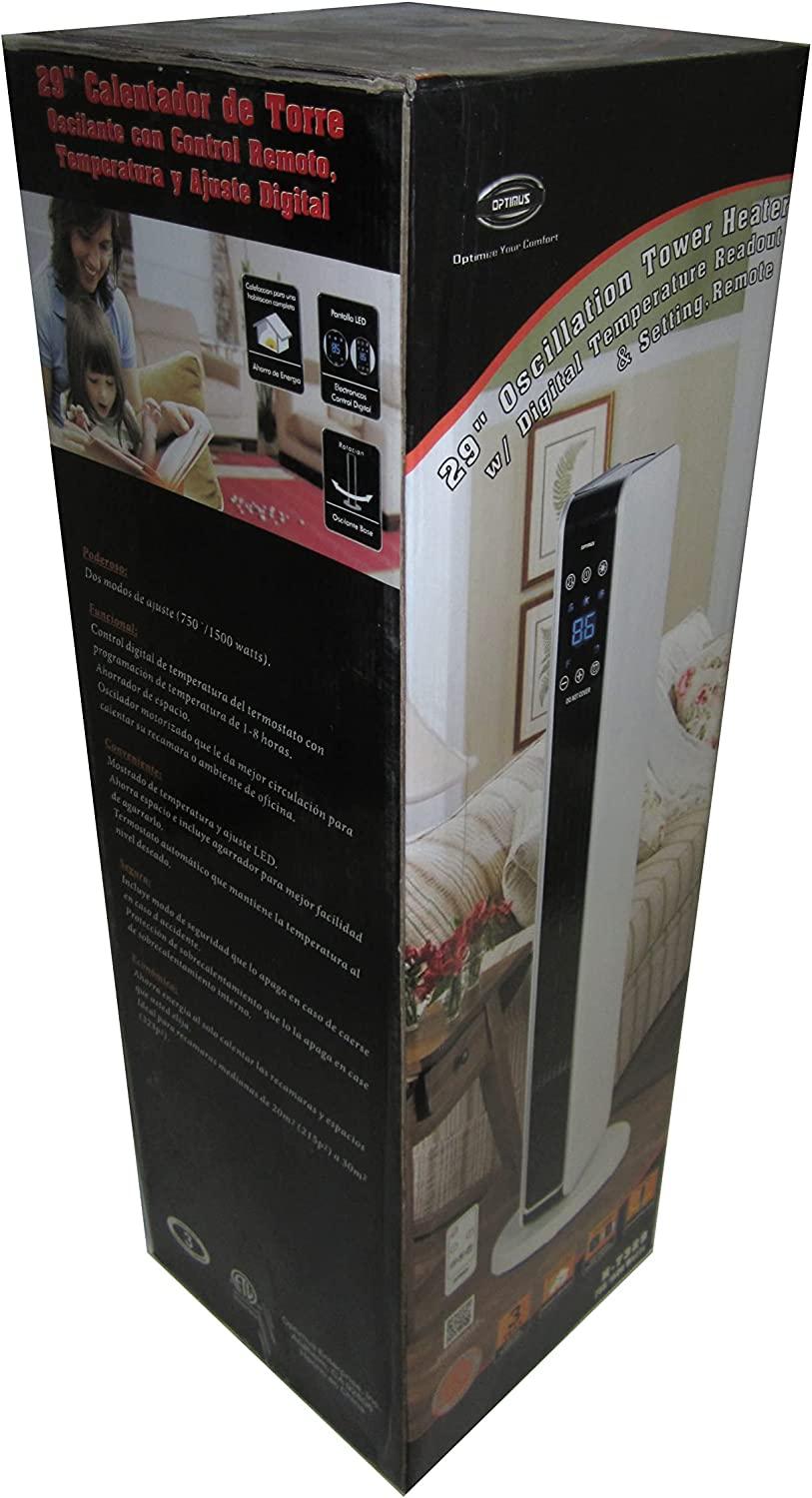 Optimus H-7329 29″ Oscillating Tower Heater with Digi Temp Readout & Setting, Remote 29″ Oscillating Tower Heater with Remote