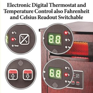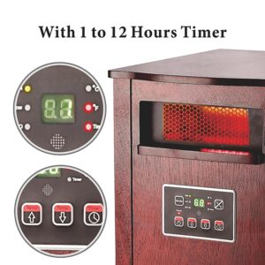 Optimus H-8121 3-Setting 1,500-Watt-Max Portable Wood-Cabinet Infrared Quartz Heater with Remote, LED Display, and Wheeled Base