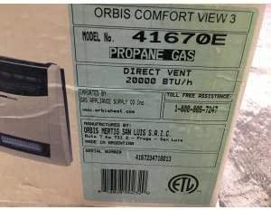 ORBIS 41670E LP/COMFORTVIEW3LP 20,000 BTU WALL MOUNTED DIRECT VENT PROPANE ROOM HEATER