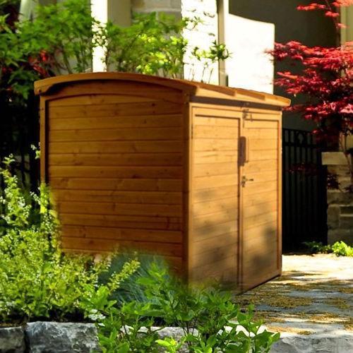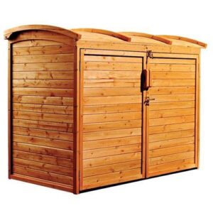 Even though you may need to keep trash cans in your yard, this Outdoor 34-inch x 62-inch Wooden Storage Shed with Lockable Doors will keep your yard from looking like trash. This handsome shed sports an appealing tongue-and-grove construction and medium brown finish. It’s designed to keep your trash and recycling receptacles organized and tidy in one centralized, convenient location. More than just attractive and convenient, however, this organizer keeps your yard and neighborhood more secure with lockable doors that will help keep critters from moving in. The pneumatic lid makes depositing your trash a cinch since it will stay up independently, allowing single-handed deposits without it slamming back down or pinching fingers.