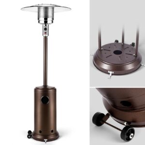 - 【ENERGY SAVING & MONEY SAVING】It’s easy to use and doesn’t burn too much propane, thanks to the unique flame emitter design, the propane patio heater burning propane more sufficiently. With a 20-lb gas cylinder will keep you warm about 10 hours.