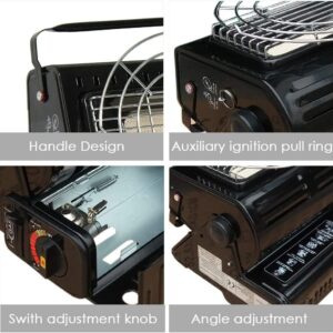 - Multifunctional Gas Heater : The multifunctional heating oven has heating and cooking modes, which can be switched at will. It can be used as a heater to heat the room, or it can be used for cooking during camping.