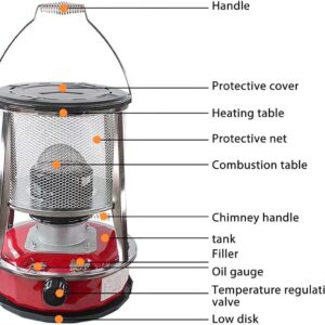 - ☛ Large-capacity fuel tank: Kerosene stoves are available in 4.6L (red) and 6L (white); equipped with storage bags and replacement parts for easy transportation, easy to carry; 360-degree protective grille for high security.